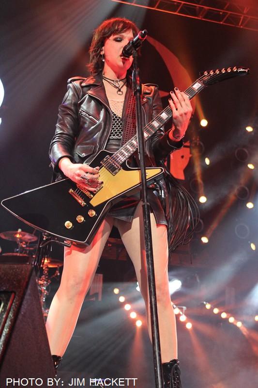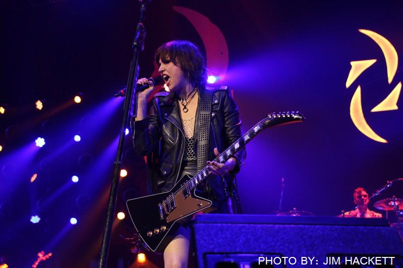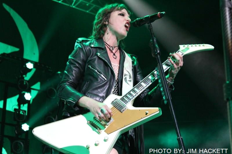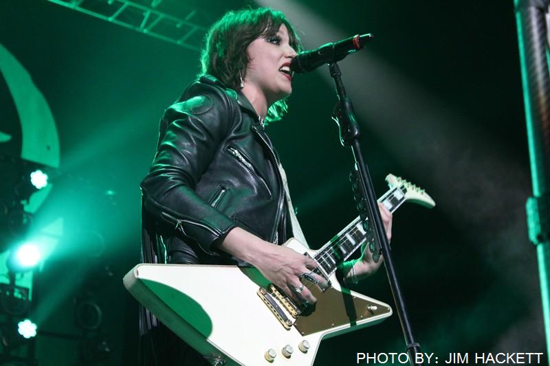 Halestorm stormed the stage at the Mohegan Sun Arena in Uncasville, Connecticut, with their new song Skulls off their fourth album Vicious. The arena was packed! Lzzy’s vocals were searing through the songs, Love Bites, and I Miss the Misery. She engaged with the audience, by having them participate, waving their hands along to Amen, and lighting lighters, and cellphones, to the song Silence. They went from the song I am The Fire, into a drum Solo by Lzzy’s little brother, Arejay. He went insane, and then brought out his jumbo sized drumsticks, as the strobe started flashing he led into the song A Freak Like Me.