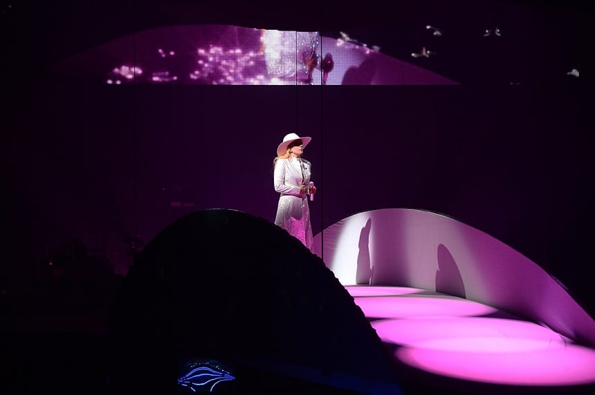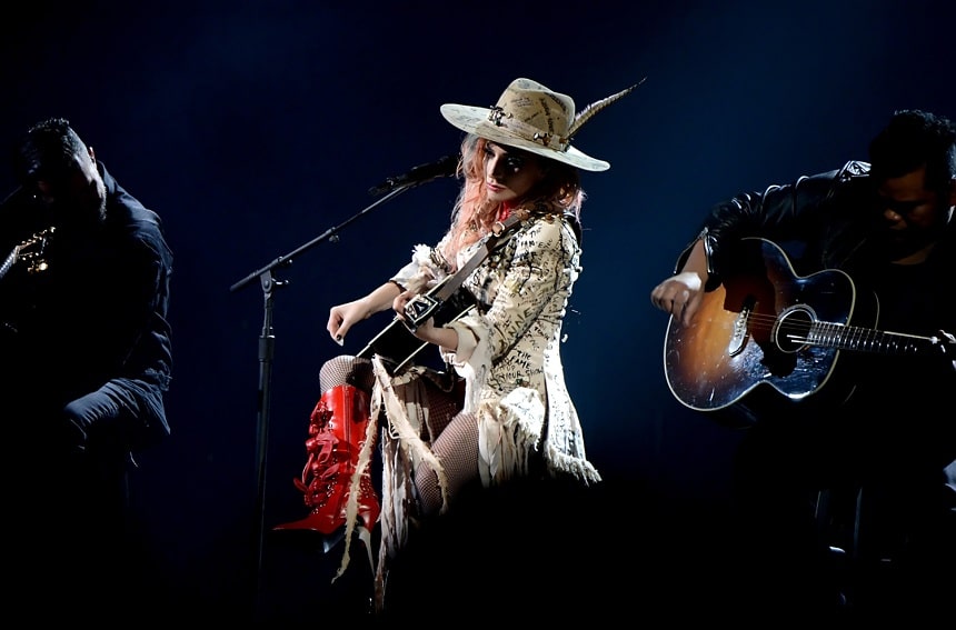 Lady Gaga’s real name is Stefani Joanne Angelina Germanotta. Her middle name was given her in honor of an aunt she never knew. The song “Joanne” is a tribute to that aunt as well as the tour. She performed the song on acoustic guitar flanked by two of her band members also on guitars. A touching song tribute that was personal to her and showcased her voice and the fact that she needs no dancers and band to back her.