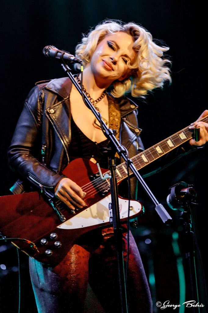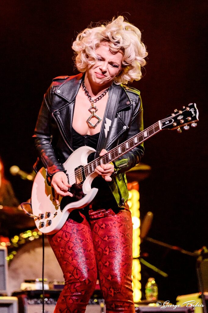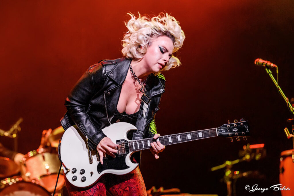 Samantha Fish Band Faster Tour March 18, 2022 Loos Center for the Arts The River Kittens, the duo of Mattie Schell and Allie Vogler from St. Louis warmed up the audience with their mandolin and guitar renditions of some traditional bluegrass and folk songs. They were talented and lighthearted and provided a smooth start to the night. I especially liked the humorous “Dressing on the Side.” It was a great ending to their set. After the River Kittens the lights dimmed and the crowd begain to hum with anticipation. Samantha Fish blasted off her set by rocking the house with the heavy driving sound of well played guitar and world class band. During the set Fish was accompained by Jimmy Hall on Vocals and Harmonica. Sarah Tomek was on drums, Ron Johnson played bass and Matt Wade on the keyboard rocked the house with "Twisted" and "Loud", two songs off her newly released album "Faster." Fish went on play the always popular "Chills & Fever" a song that just gets better every time you see her perform. Samantha is on the ‘Top 10 Best Blues Guitarists in the World’ of Guitar World Magazine's list who has also topped the Billboard Blues Charts numerous times. During the night she changed up many songs by time masterfully switching up guitars and the sound each produced as easily as she does genres. Fish goes from crooning blues to a rocking hard driving sound. The audience cheered her on as she did way more than warm the band up for her nights co performers The Devon Allman Project, she was scorching the place. She finished her set with the four-string box guitar and left the audience wanting more. The crowd responded with a standing ovation and calls for more. As always Samantha Fish gives her all in a show and she is one blues artists not to miss if you get the chance. She finished her set with the four-string cigar box guitar and left the audience wanting more. The crowd responded with a standing ovation and calls for more. As always Samantha Fish gives her all in a show and she is one blues artists not to miss. After the intermission and The Devon Allman Project did their set Samantha Fish retook the stage along with the Allman, Hall, MacCray and the River Kittens and the stage was filled with great artists to finish off the night with a tribute to Fleetwood Mac's "Dreams" and Wet Willie's "Keep on Smilin". After the intermission and The Devon Allman Project did their set Samantha Fish retook the stage along with the Allman, Hall, MacCray and the River Kittens and the stage was filled with great artists to finish off the night with a tribute to Fleetwood Mac's "Dreams" and Wet Willie's "Keep on Smilin". https://www.samanthafish.com/ Review by Donna Erichsen Photos by George Bekris Setlist: Bulletproof Loud Twisted Ambition Chills and Fever No Angels Kill or Be Kind Watch It Die