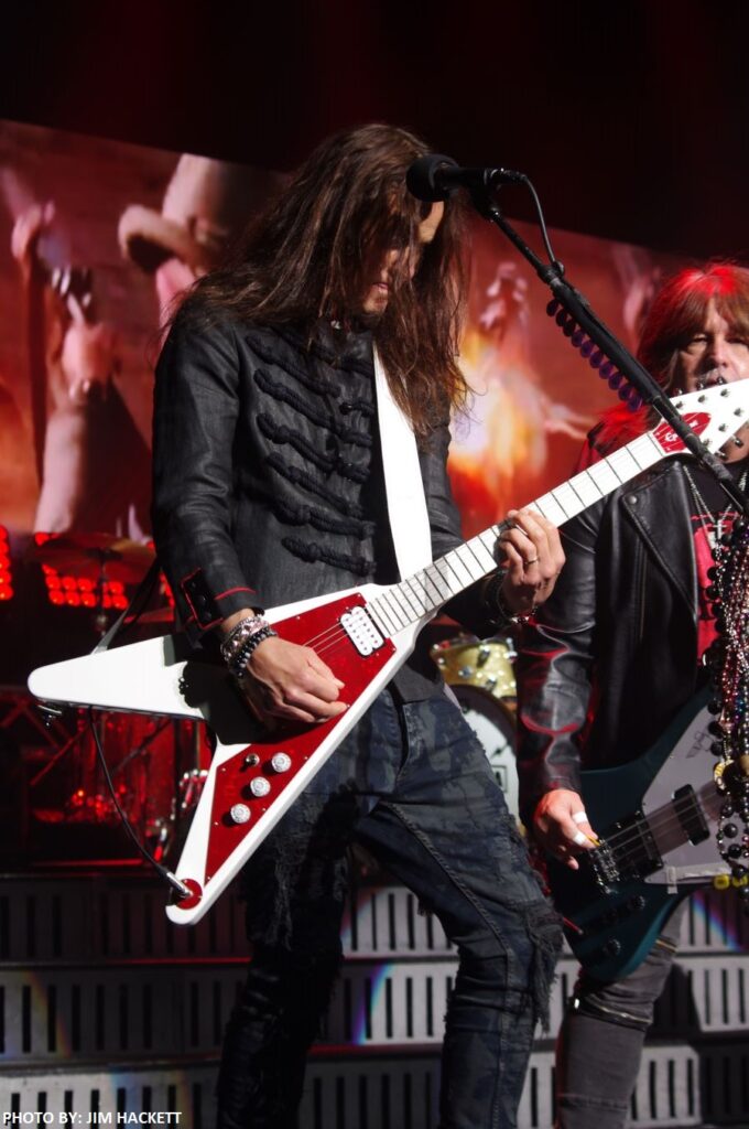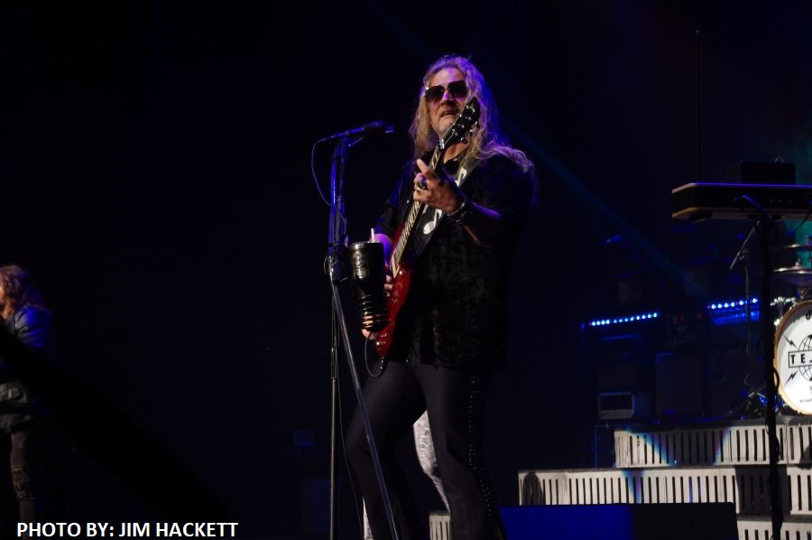 Next, the band rocked out with “We’re No Good Together.” Singer Jeff Keith delivered an outstanding performance, exuding pure rock-n-roll energy. The atmosphere was electric at Foxwoods, and the ensuing songs, “Sound and Emotion,” showcased the band’s dynamic range. Brian Wheat’s bass reverberated throughout, and Frank’s guitar skills were on full display. A touching tribute to Steve Clark appeared on the screen after one of the songs.