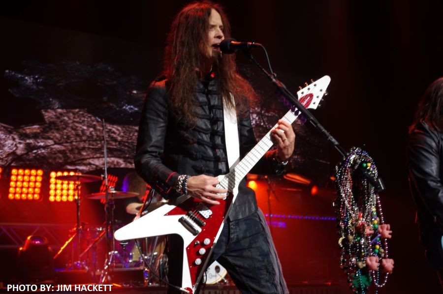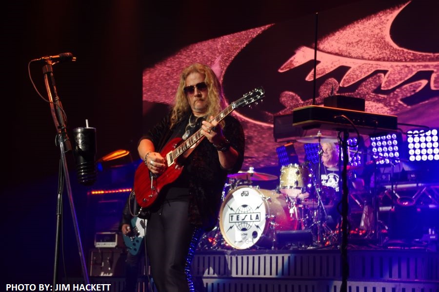 It’s Saturday night, and it’s time to rock with the California-based band Tesla. Tesla opened up their set with tunes like “Modern Day Cowboy” and “No Way Out.” Guitarist Frank Hannon was jamming out, playing slide guitar, creating sounds reminiscent of a revving car engine shifting gears. The band then introduced a new song called “Miles Away” from their latest live album, “Full Throttle.” The song began with Frank skillfully using the wah-wah pedal, creating a dark and heavy atmosphere. A fan-favorite, “Changes,” followed, with clouds displayed on the screen behind the band as they played. Frank Hannon addressed the audience, reflecting on 1986 as a significant year, marking the release of “Mechanical Resonance.”